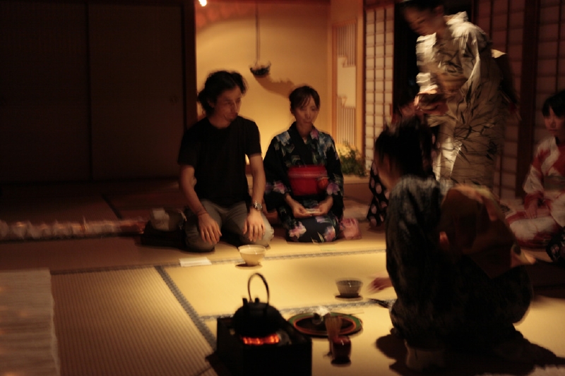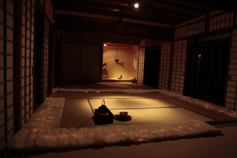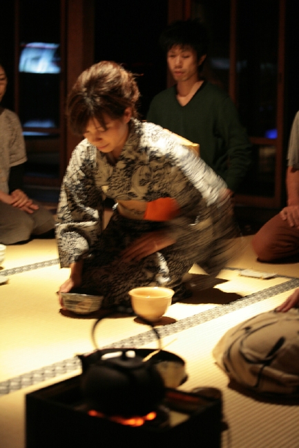 2005年より、涼音堂茶舗主催のイベント「electronic evining -電子音楽の夕べ-に、お茶席を造る仕事として参加している。主旨は電子音楽に映像と灯かりのインスタレーションとお茶席を取り合わせて、電子の夕涼み空間を堪能していただくというイベントで、毎年、「華」「書」「映像」などさまざまなクリエイター達と茶の湯を楽しむ空間を作り、心地よい緊張とかすかな音色を楽しむ時間となっている。