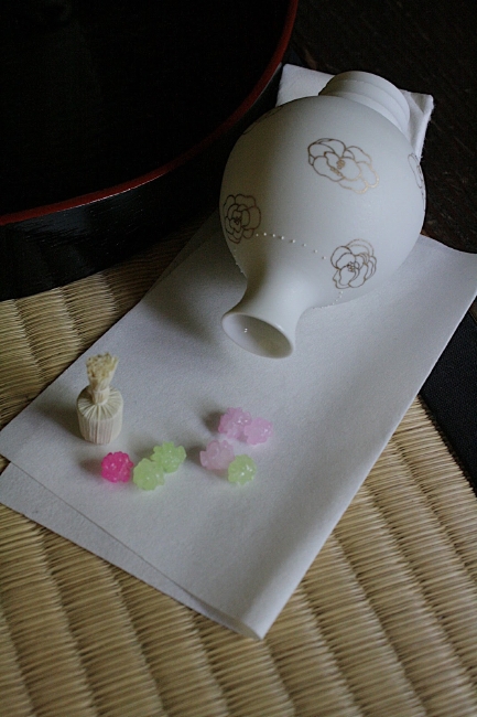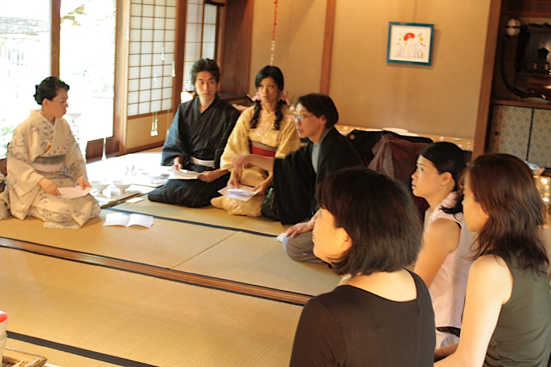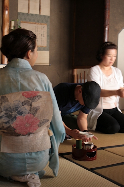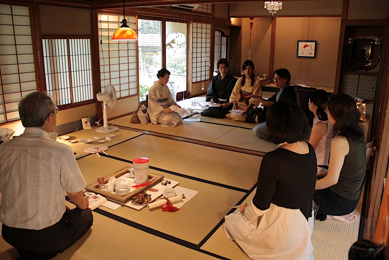 2010年7月、京都の御所西の「弘道館」にて七夕の展覧会をした際のお茶会。弘道館は、江戸時代、皆川淇園という儒者が学問所として使っていた日本建築で、表千家 卒啄斎時代の七畳敷のお茶席がある。今回は、弘道館のオーナーの有職菓子御調進所 老松の太田達氏と共に、「星逢の茶会」を開催した。茶碗、水指などはsione作を用いた。 当日は、大勢のお客様にお越し頂き、お点前は14席にも及んだ。